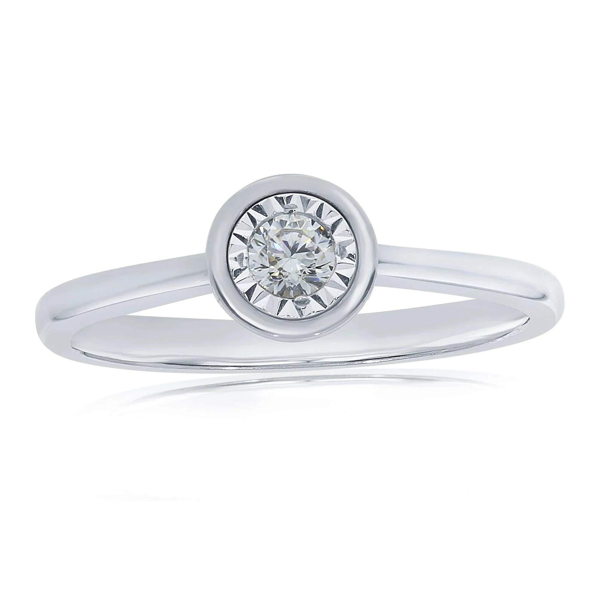 -70%0.17ct Illusion Set Round Brilliant Cut Diamond Solitaire 9ct White Gold Ring—
